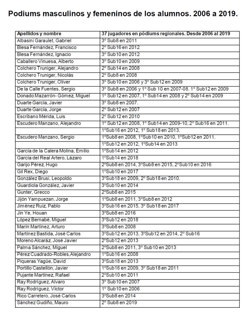Alejandro Escudero Manzano, subcampeón de España Sub14 en 2010 y Campeón Individual Absoluto Regional 2010 siendo el jugador más jovenen lograrlo a los 13 años.