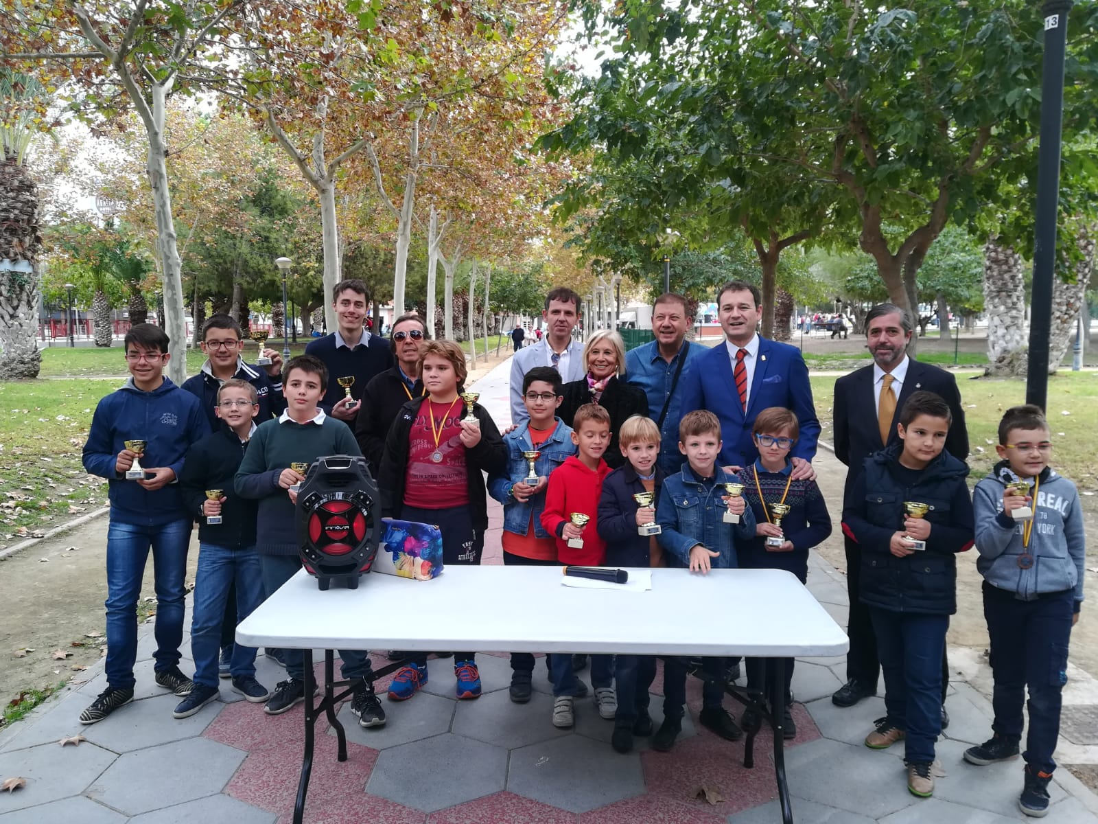 El tiempo, nuevamente, se hizo amigo del evento que como cada año saca el ajedrez a la calle como un espectáculo maravilloso de niños y niñas jugando al ajedrez (unos 130) y por lo tanto adquiriendo el hábito de la concentración, tan necesario en las tareas escolares. Adjuntamos las clasificaciones y diversas fotos, ya que una imagen vale más que 1000 palabras.