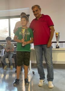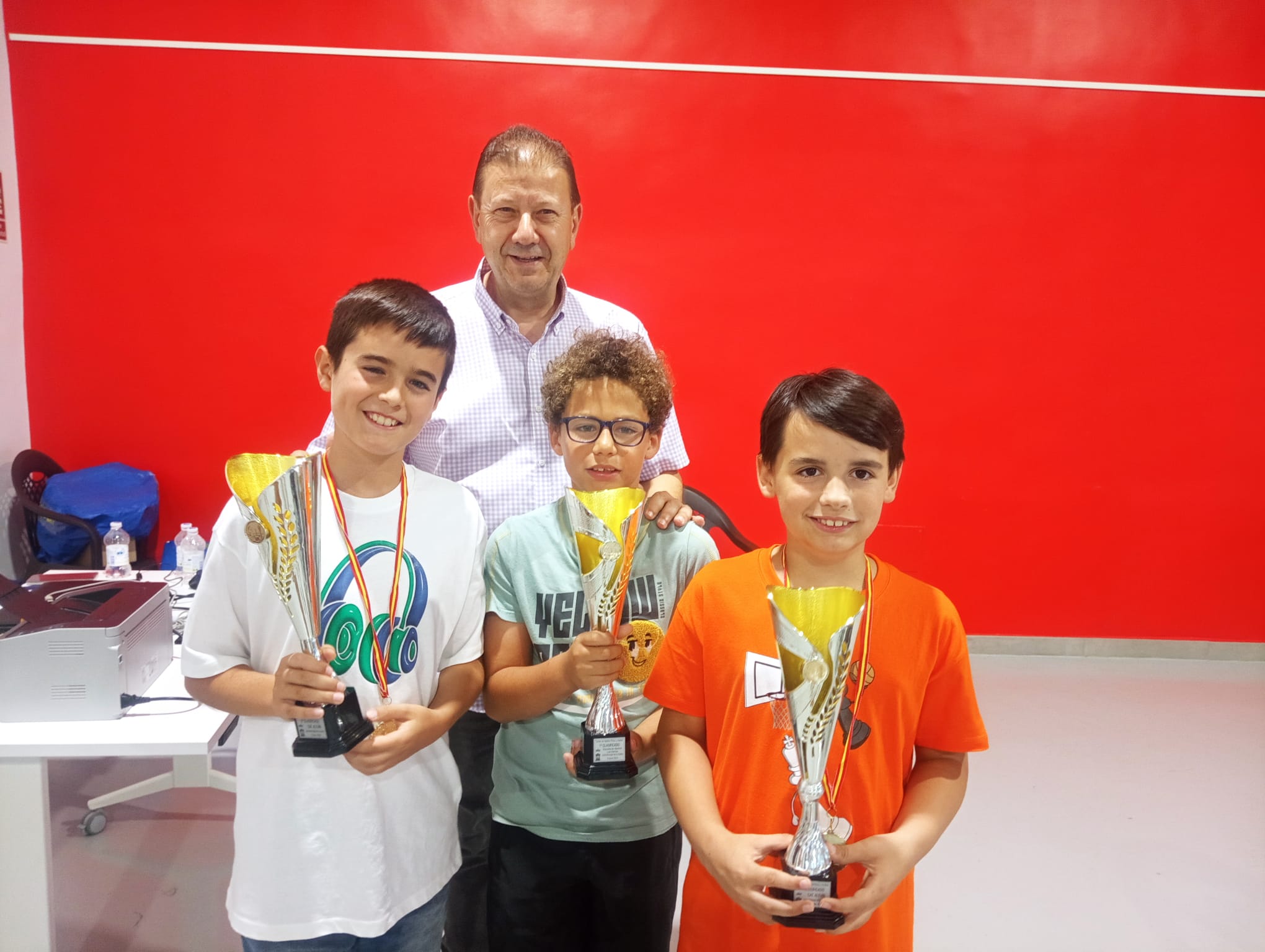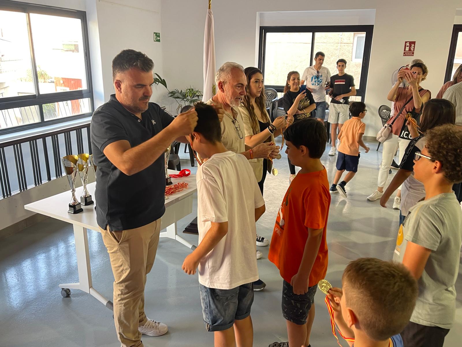 Alumnos premiados de la Escuela de Ajedrez Los Garres. En el centro, Jorge Iyú Guerrero, primero de la Escuela de Ajedrez Los Garres, Rubén Yelo Abellán, 2º Alevín en la foto el primero por la izquierda y Dario Andreo Rives, 1º clasificado alevín.