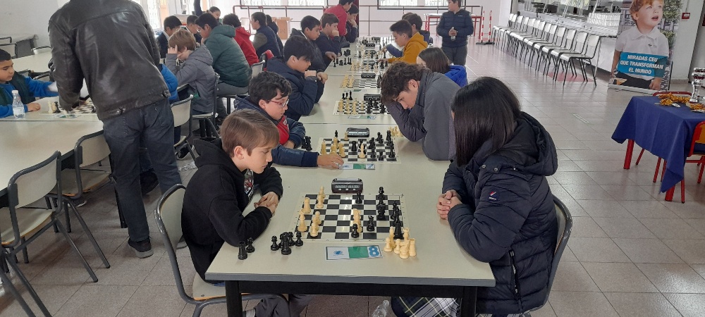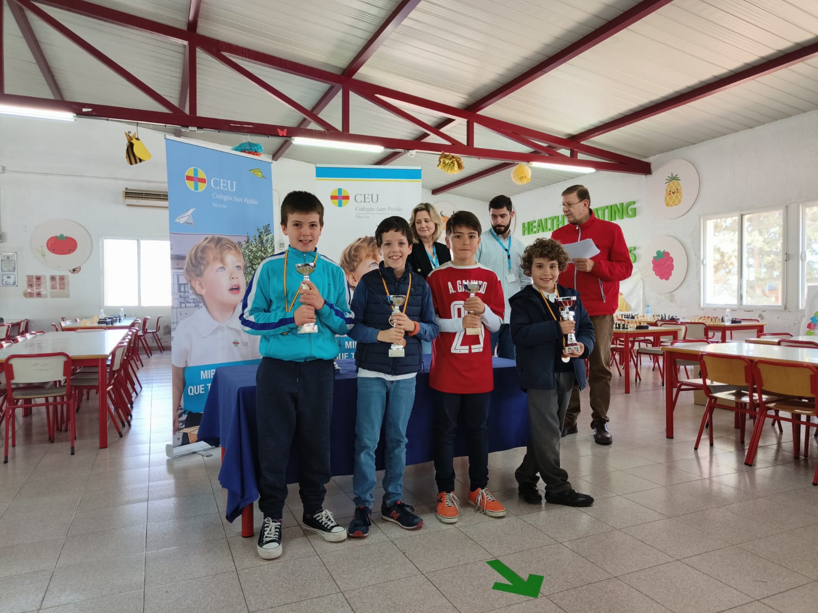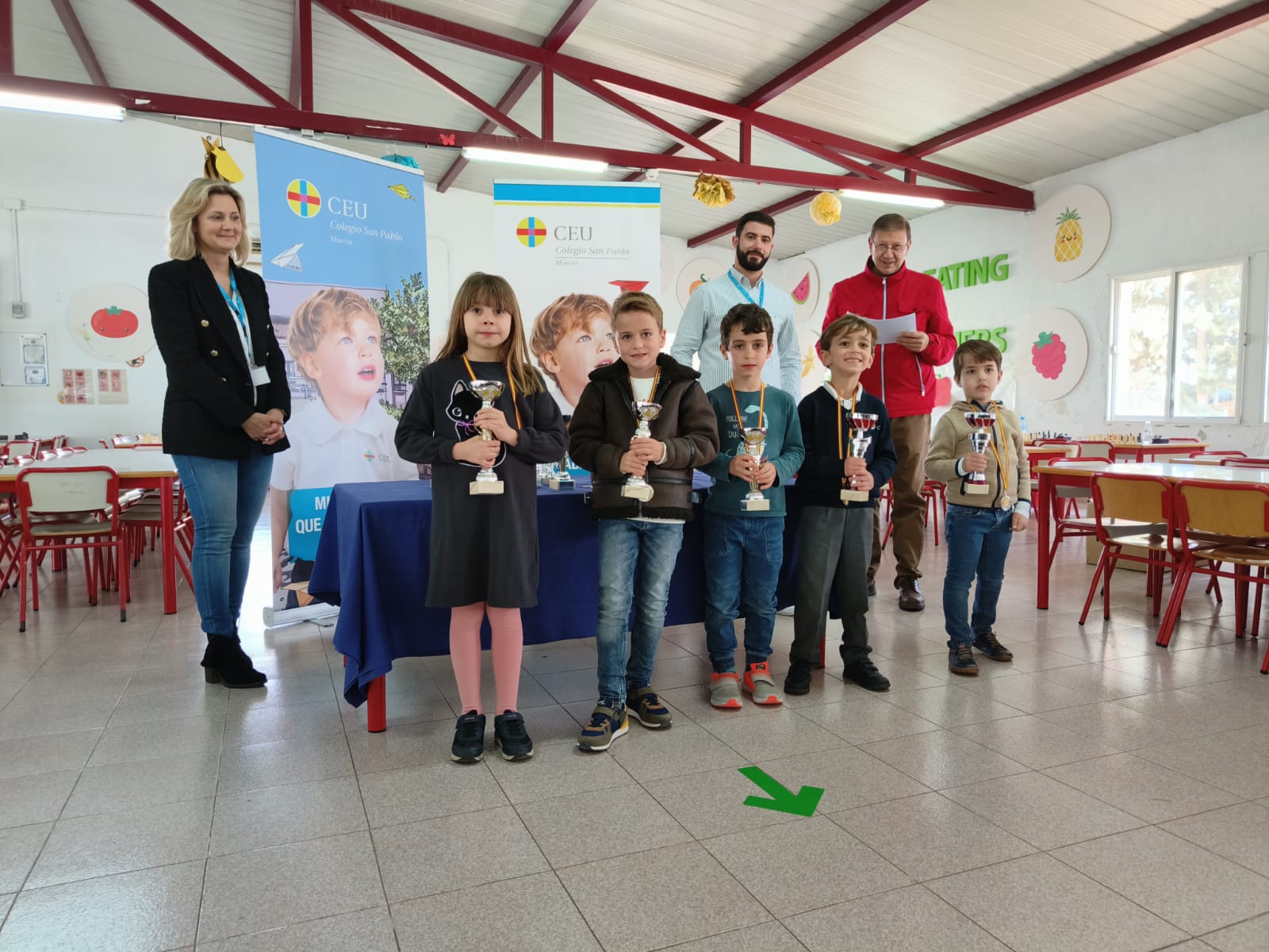 El domingo 19 se celebró en el Colegio CEU San Pablo el V torneo del XVI Circuito Escolar Educajedrez. Con una amplia asistencia, nos acompañaron en la entrega de trofeos Lola, coordinadora de las actividades extraescolares y Pablo, el profesor de ajedrez. Un buen tándem que está haciendo que aumente el número de alumnos que se apuntan al ajedrez y realizando una estupenda promoción del deporte-juego-ciencia.