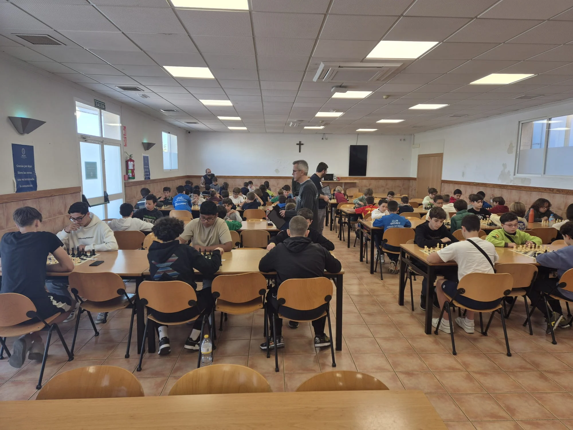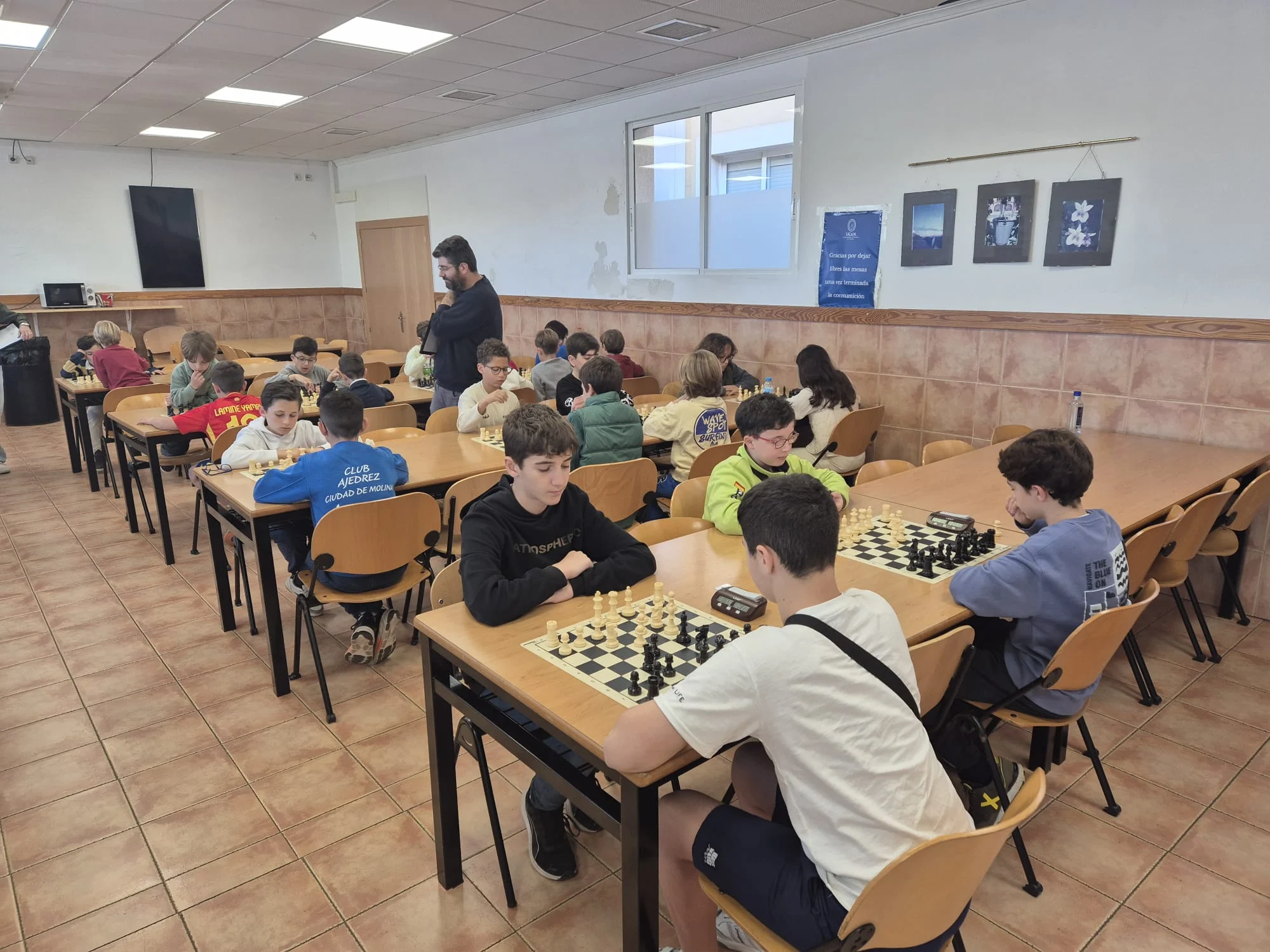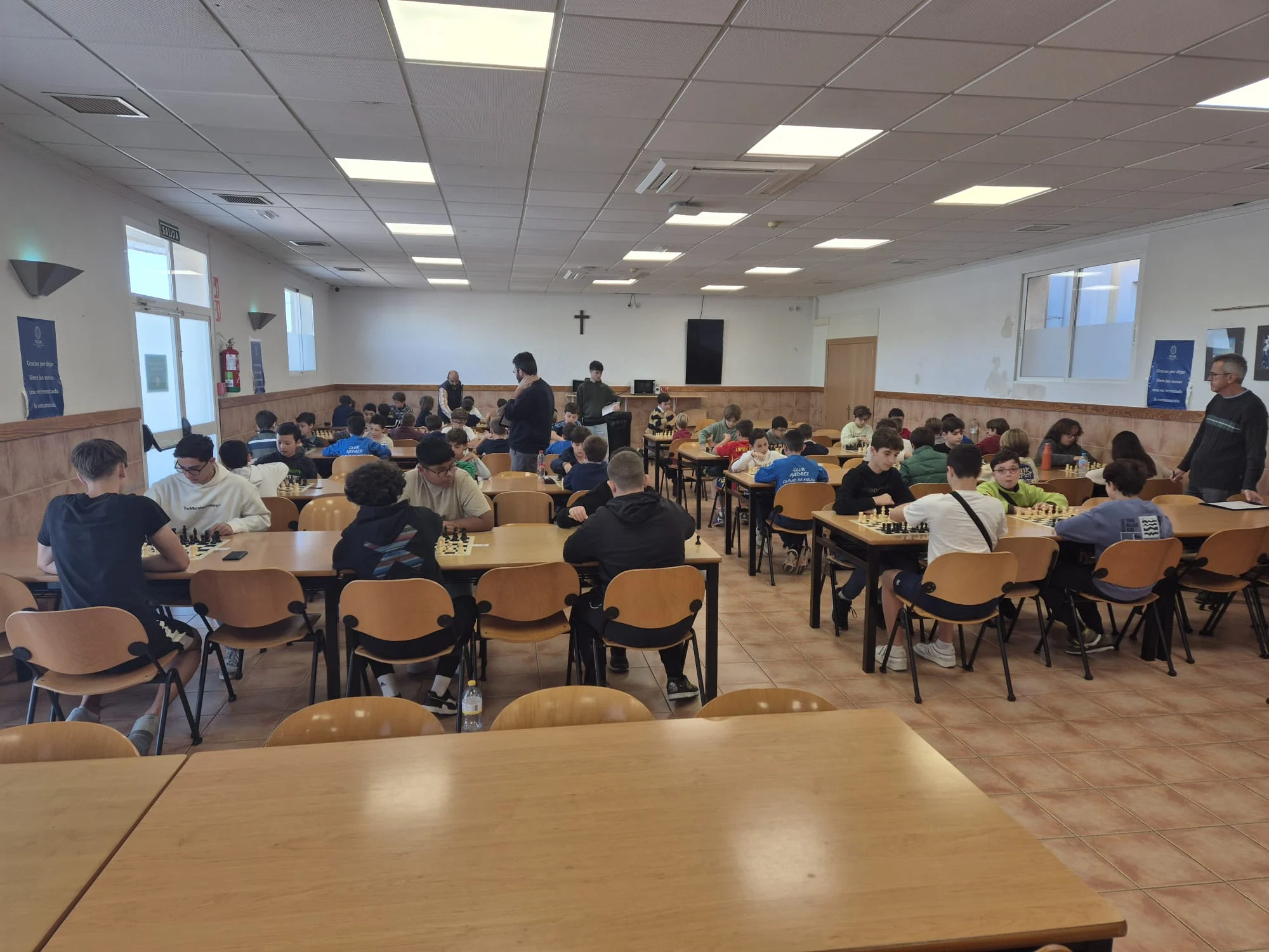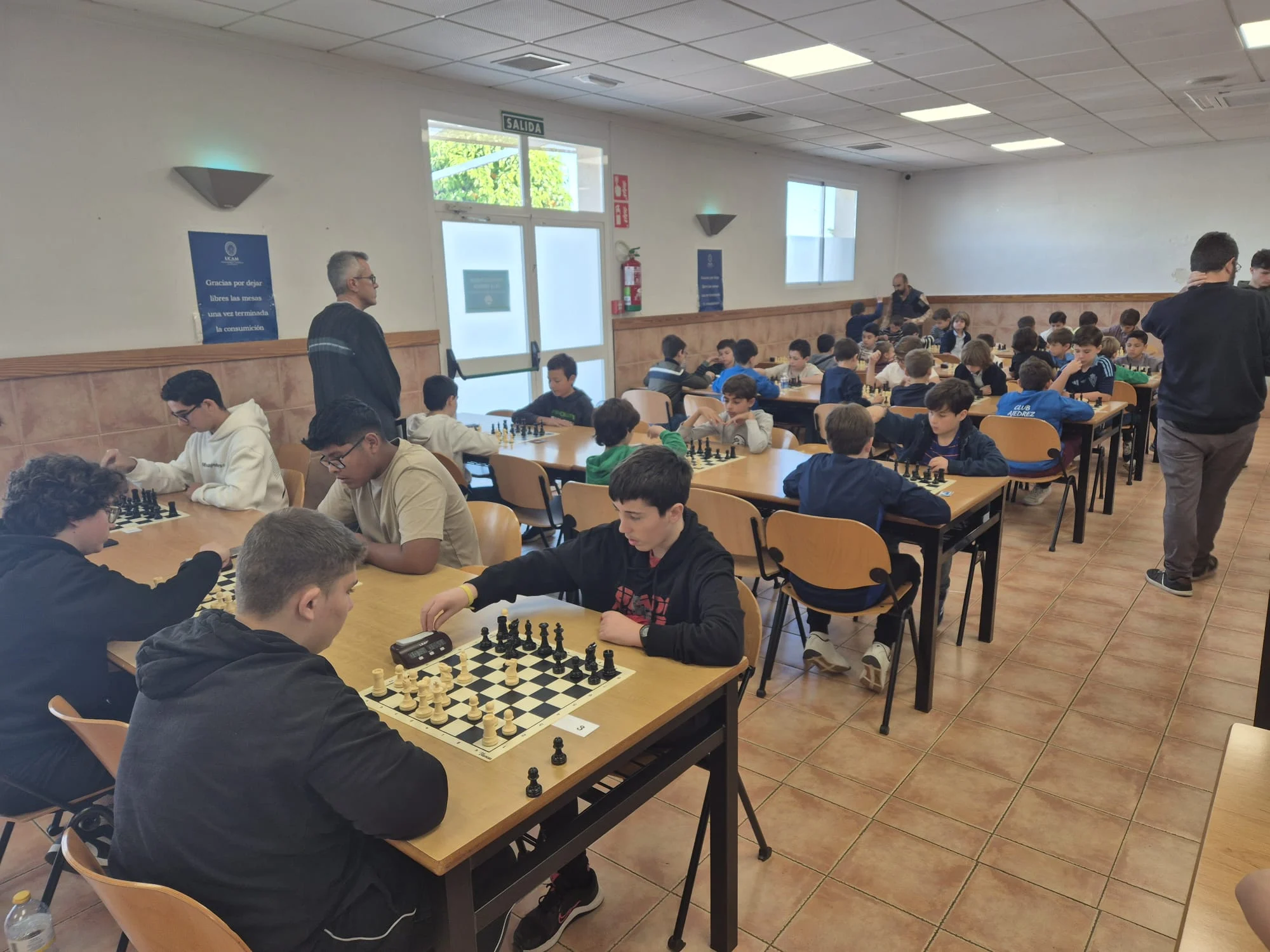 Último y decisivo torneo para las clasificaciones finales del XVIII Circuito Escolar Educajedrez. Buen ambiente y sana competición entre los participantes, creando muy pocos problemas a los árbitros del evento. Nos acompañó en la clausura, Amparo Nicolás Almagro, encargada de las Relaciones Internacionales de la Universidad y, como siempre, damos las gracias a dicha institución por permitir la realización del torneo en sus instalaciones.