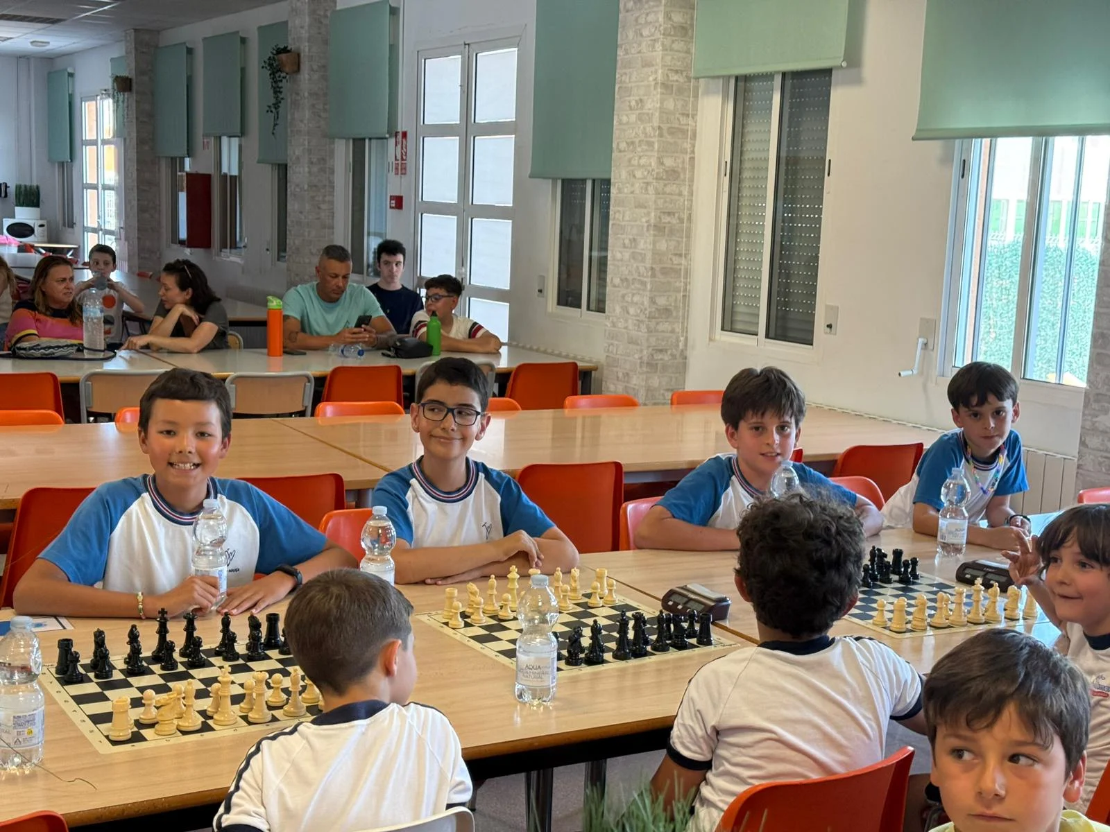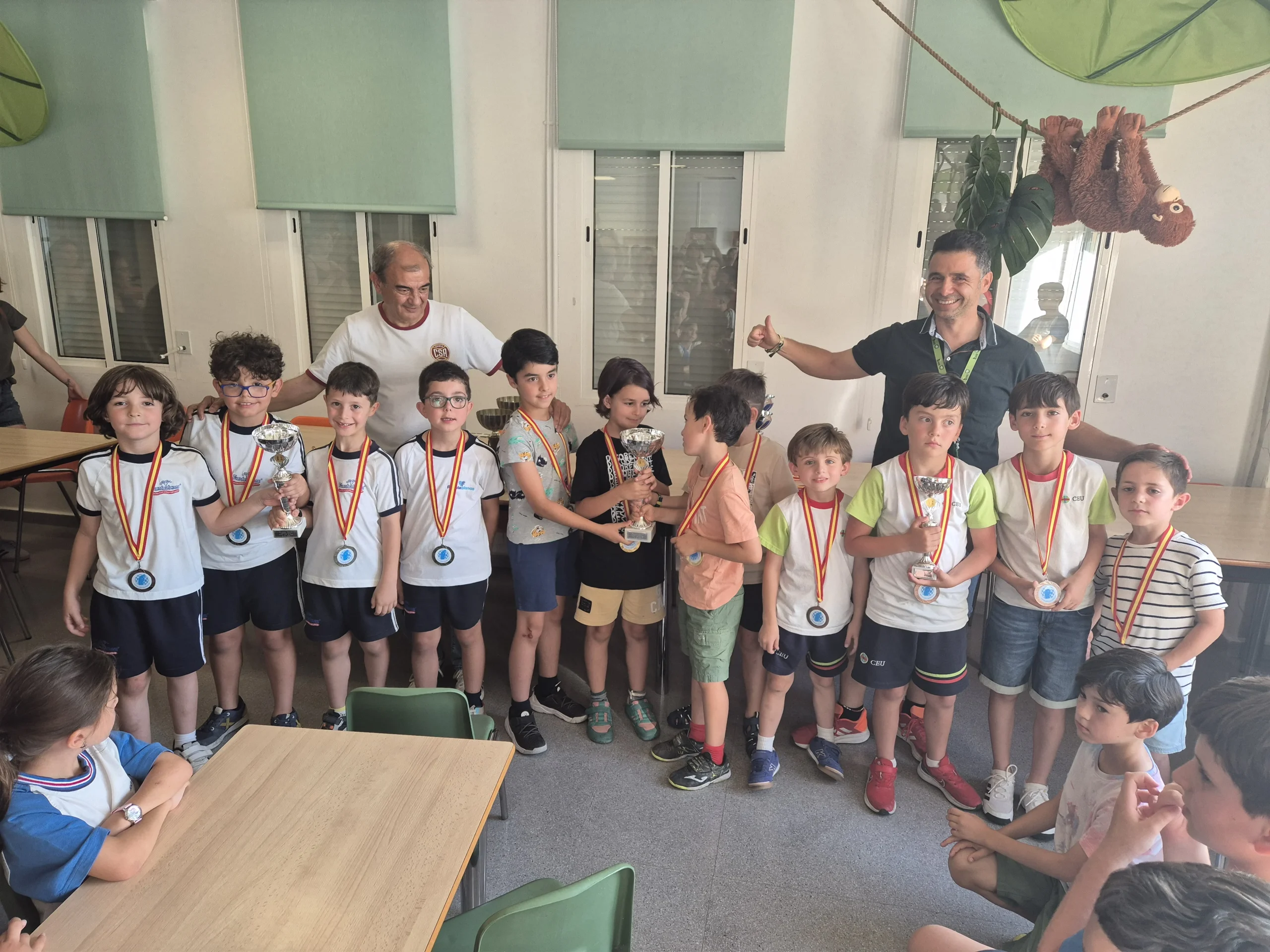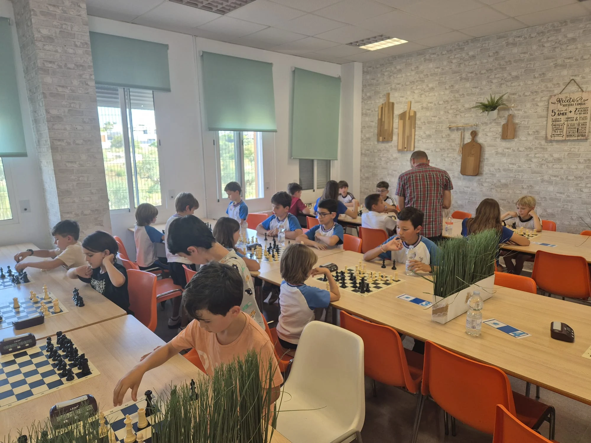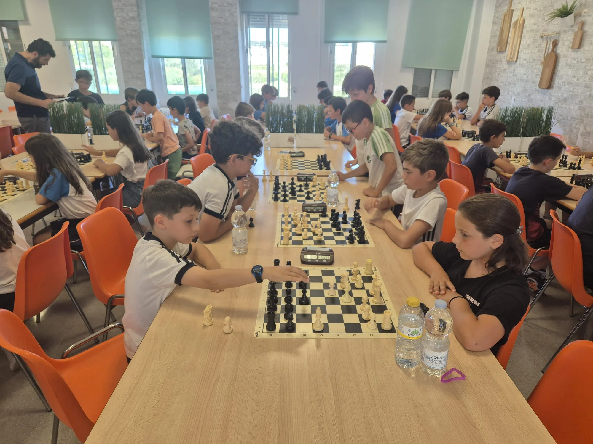 12 equipos “valientes” (cada uno formado por 4 jugadores) desafiando a las altas temperaturas, tomaron los botellines de agua como escudo y el compañerismo como lanza. En esta singular batalla, los caídos se levantaban y los vencedores no se relajaban. En fin, estos guerreros mentales se lo pasaron genial. En la entrega de medallas y trofeos nos acompañaron Juan Antonio Pedreño, Presidente de las Cooperativas de Enseñanza y Antonio, el profe de ajedrez de la Cooperativa Los Olivos. Recordaros que el último torneo de la temporada será el 14 de junio en Espinardo y que a finales de octubre empezaremos con el XIX Circuito Escolar Educajedrez.