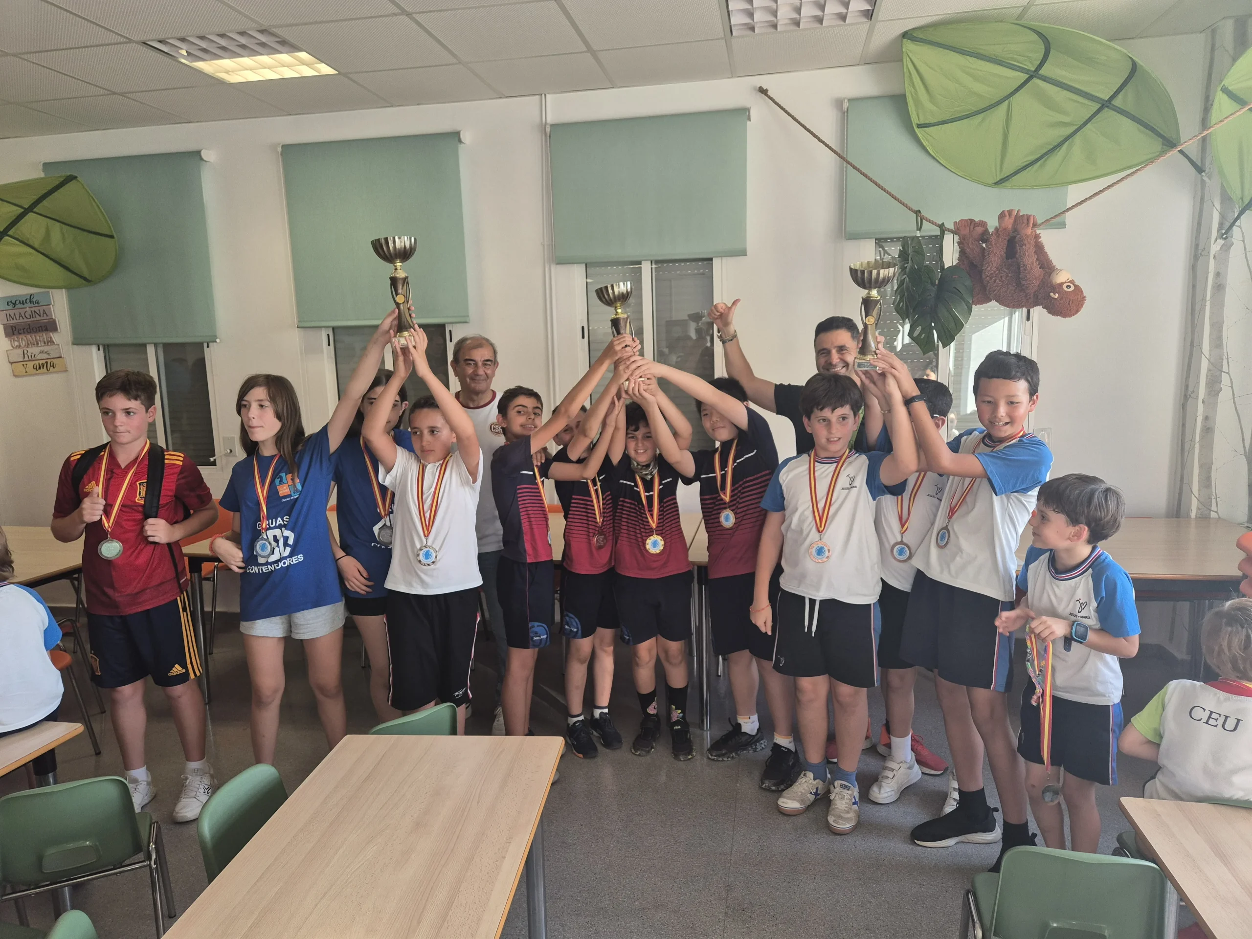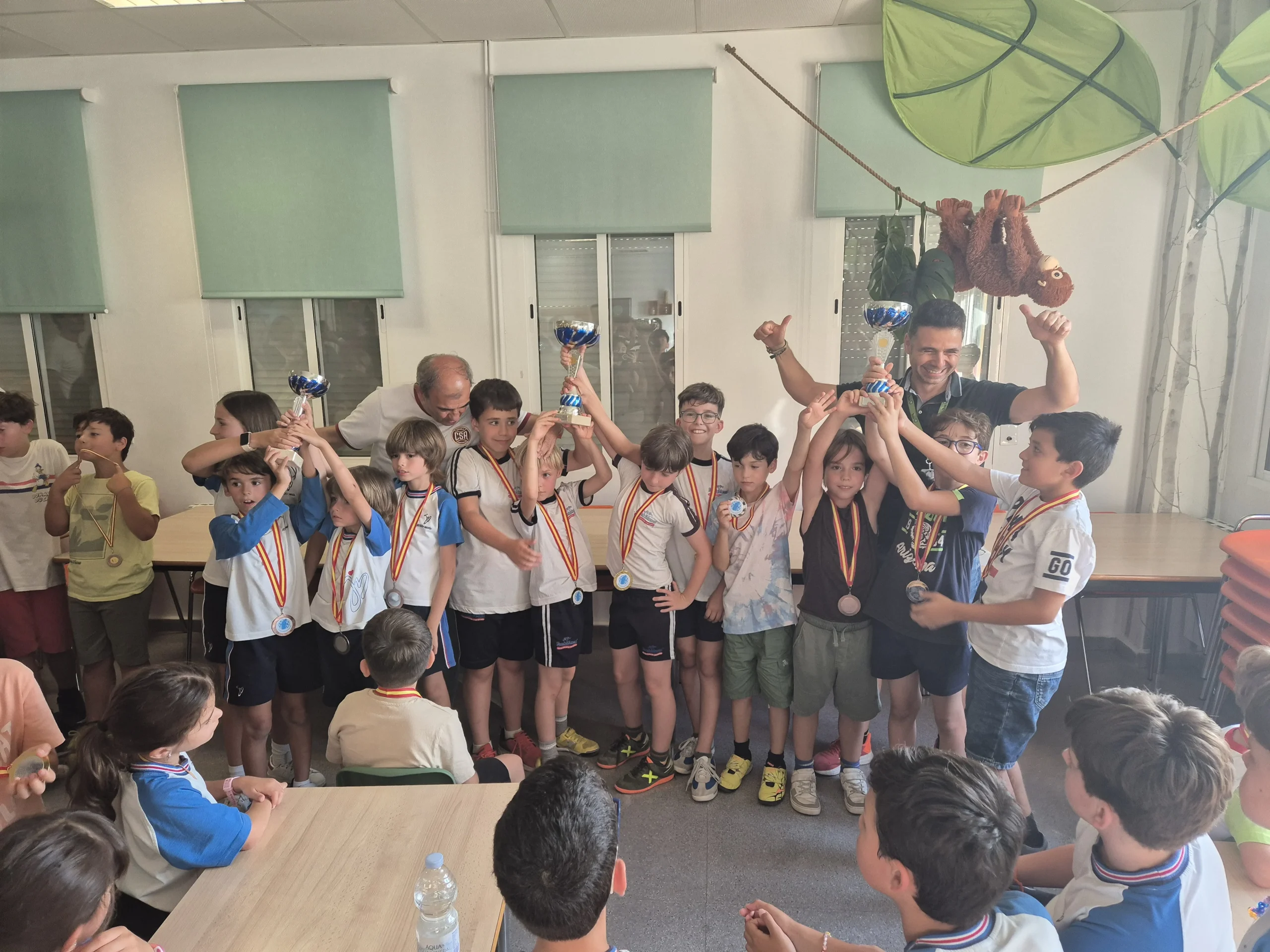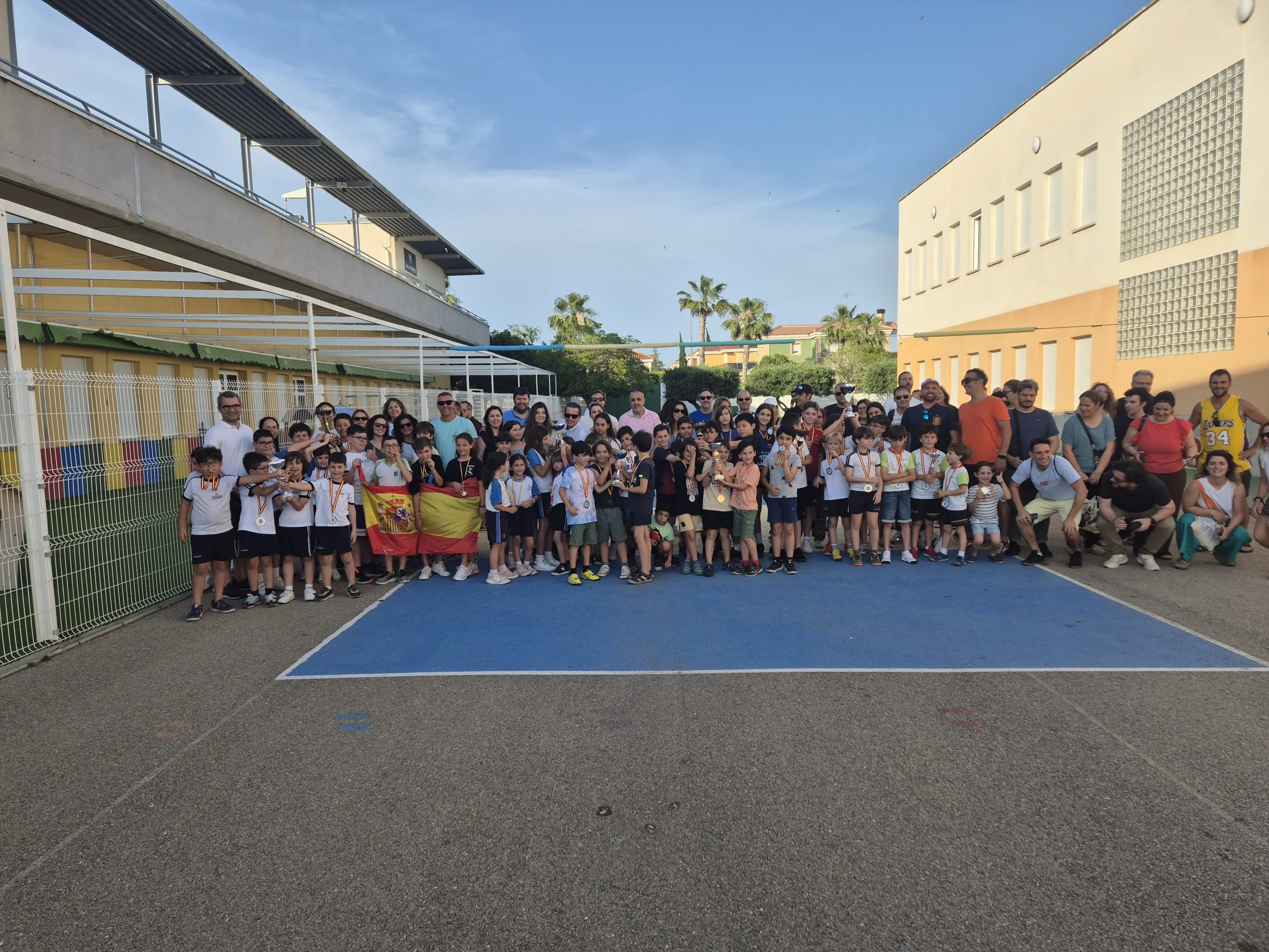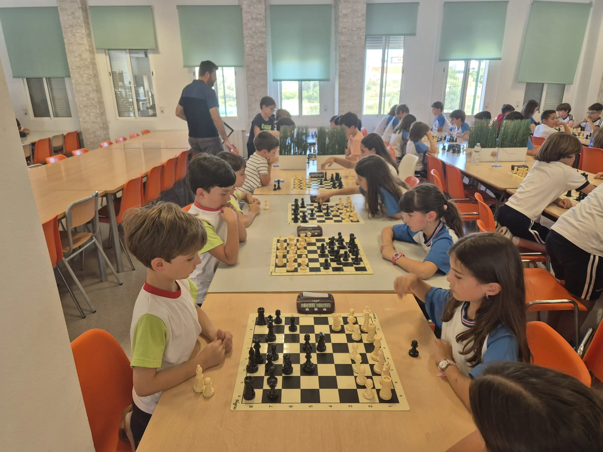 12 equipos “valientes” (cada uno formado por 4 jugadores) desafiando a las altas temperaturas, tomaron los botellines de agua como escudo y el compañerismo como lanza. En esta singular batalla, los caídos se levantaban y los vencedores no se relajaban. En fin, estos guerreros mentales se lo pasaron genial. En la entrega de medallas y trofeos nos acompañaron Juan Antonio Pedreño, Presidente de las Cooperativas de Enseñanza y Antonio, el profe de ajedrez de la Cooperativa Los Olivos. Recordaros que el último torneo de la temporada será el 14 de junio en Espinardo y que a finales de octubre empezaremos con el XIX Circuito Escolar Educajedrez.