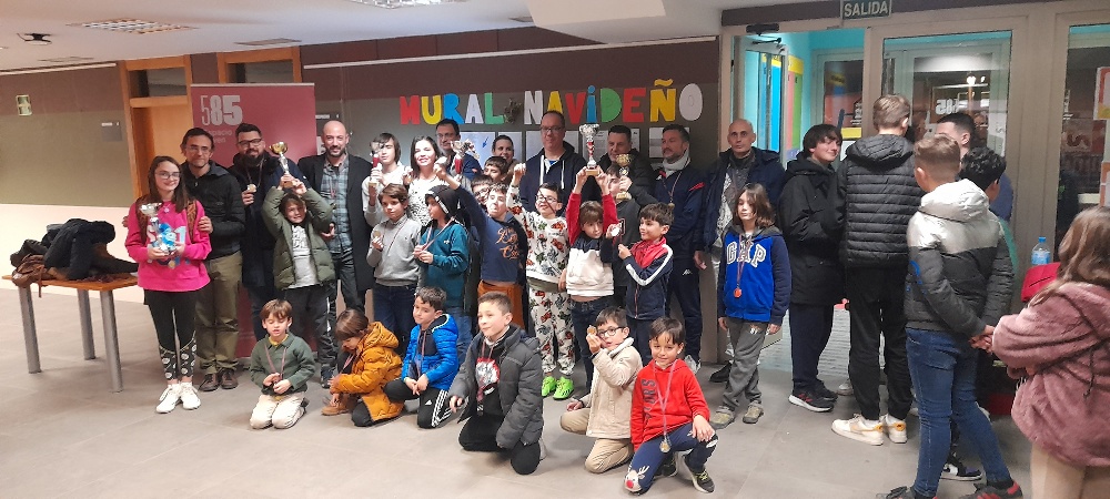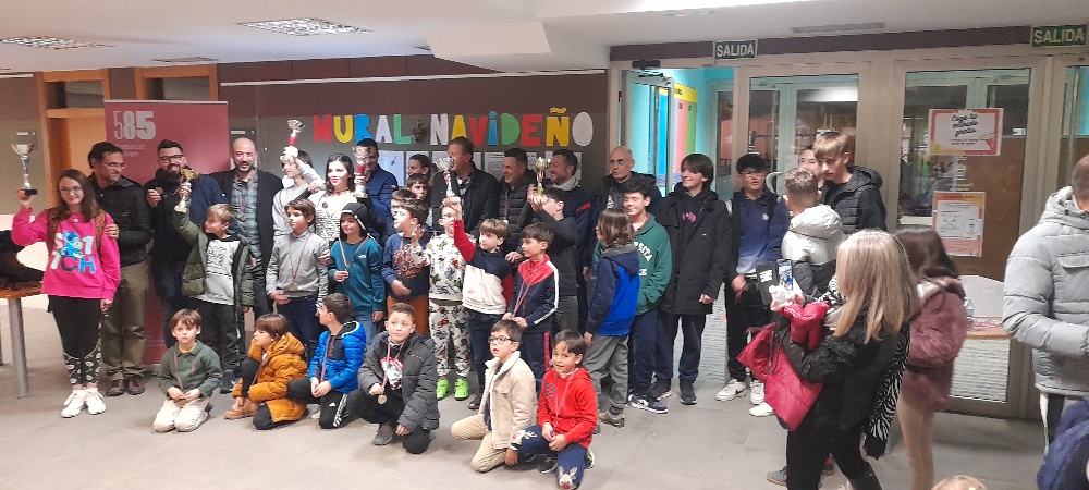 El pasado 29 de diciembre de 2023 , se realizó el tradicional torneo fin de año “Escuela de Ajedrez Espacio Juvenil 585m2”. Los mayores, pequeños y acompañantes se lo pasaron en grande y deseando volver  a repetir esta experiencia. En la clausura nos acompañó Tomás, técnico del Ayuntamiento que dirige dicho centro juvenil. Los primeros clasificados por categorías fueron: clasificacion