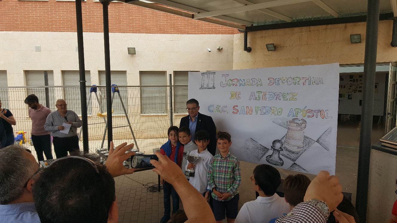 NOS ACOMPAÑO EN TODO MOMENTO, LA CONCEJAL DE EDUCACIÓN DE SAN PEDRO DEL PINATAR, LA DIRECTORA DEL COLEGIO, ROSA, CON UN BUEN NUMERO DE PROFESORES DEL CENTRO Y MIEMBROS DE LA JUNTA DIRECTIVA DE CONCAPA, VICTOR Y JUAN FERNANDEZ BELDA. LA JORNADA EMPEZÓ A LAS 10 HORAS., TERMINANDO SOBRE LAS 13,30 HORAS. CONTANDO CON LA COLABORACIÓN DE EDUCAJEDREZ.