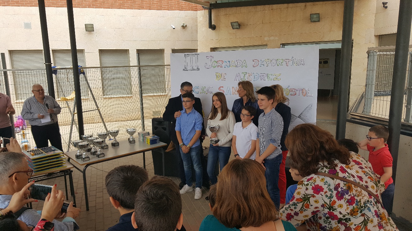 EL COLEGIO NOS OFRECIÓ CON UN DESAYUNO, TANTO A NIÑOS, COMO A PADRES, LOS CUALES FUERON MUY NUMEROSOS. EN LA ENTREGA DE TROFEOS, TODOS LOS EQUIPOS RECIBIERON EL SUYO Y LOS NIÑOS DE 5 Y 6º DE PRIMARIA, RECIBIERON MATERIAL ESCOLAR, ASÍ COMO JUEGOS DE AJEDREZ, PARA PRACTICAR EN CASA.